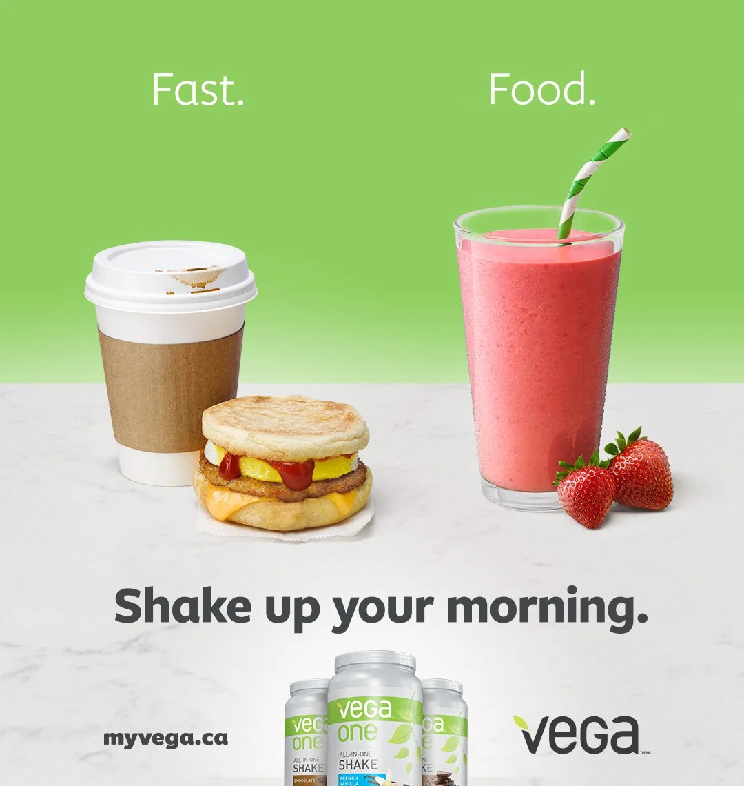 Vega One ‘Morning shake-up’ blitz across Toronto (see below) with Vega Ambassador Lauren Toyota, who led a Vega on-site yoga & wellness experience.