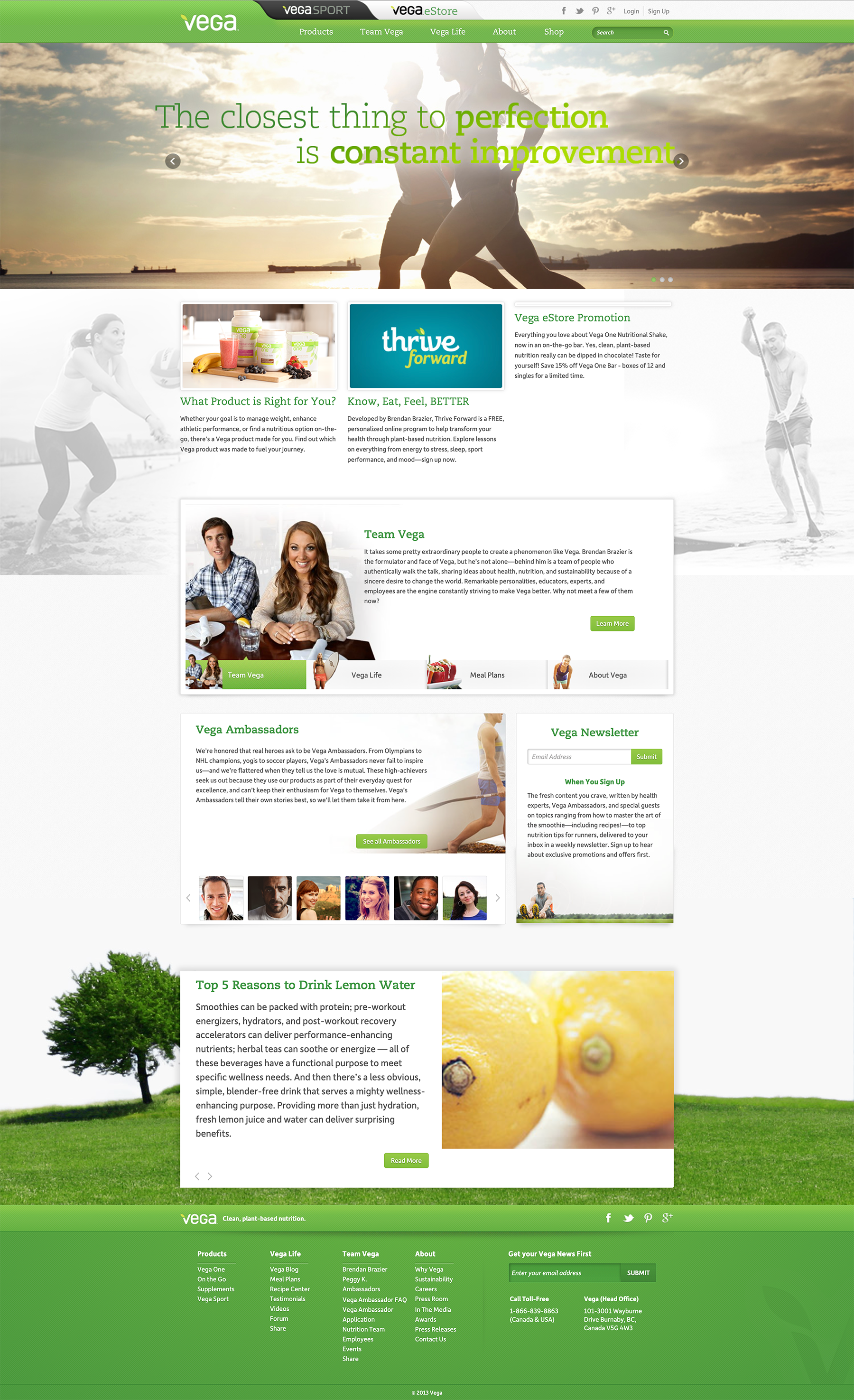 As Creative Director from Vega’s early days to being acquired by WhiteWave for $500M(US) 8 years later, I grew and led an inspired (and inspiring) creative team of designers and content writers, working in lock-step with an ever-expanding team of educators, community outreachers, and foodie-to-pro athlete ambassadors.